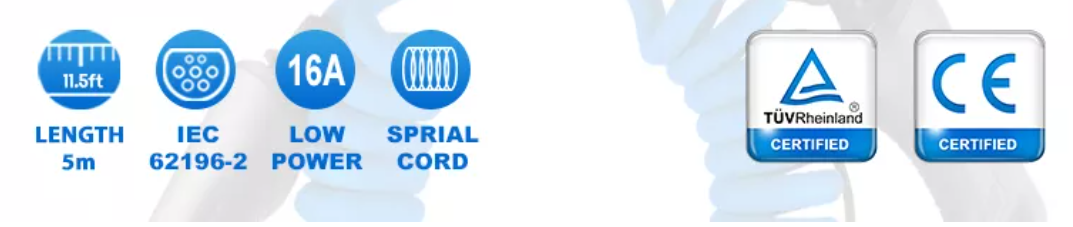 1)The 16A 32A EV Charger Mode 3 Electric EV Charging Cable Car Type 1 To Type 2 Ev Charging Cable can provide a maximum charging power of 7.4 kW. This charging cable is ideal for all electric cars and plug-in hybrids, especially for charging at public charging stations.