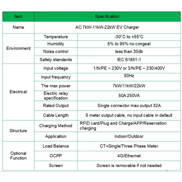 Charging Speed : 7.2KW-11KW-22KW